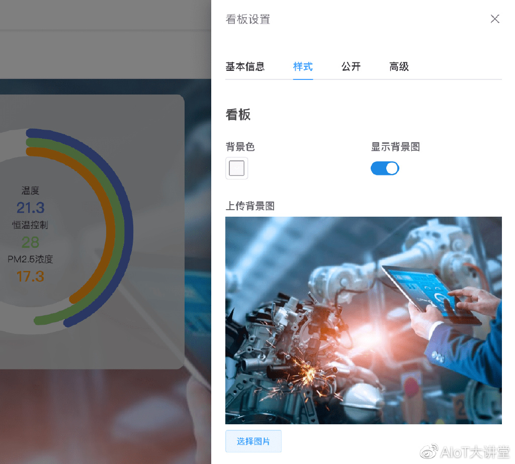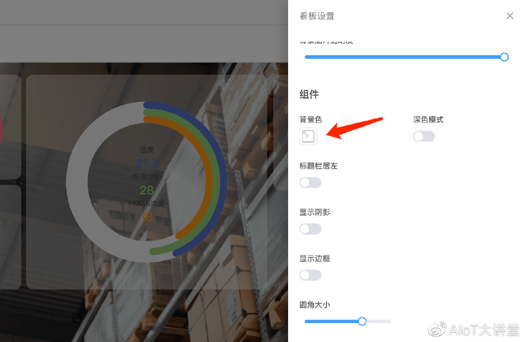 为了避免组件和看板背景图片的重合,可以将组件卡片设置为带有半透明效果的背景色。