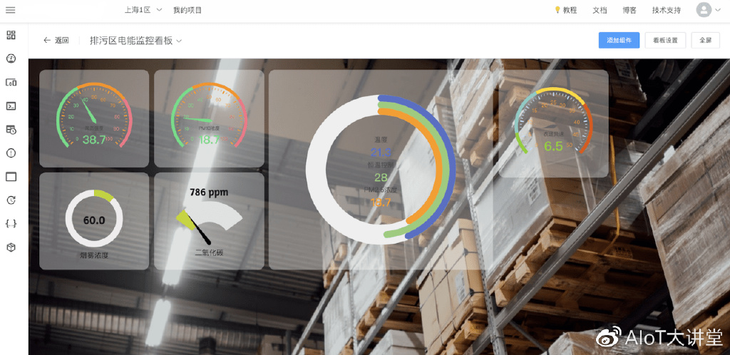 很多用户将物联网设备接入 云蜂科技物联网Pass平台 后,毫不费力就可以搭建出简洁美观的可视化看板。看板是平台上的一款开箱即用的可视化产品,可以帮助您在 10 分钟内搭建出专业水准的看板页面,可视化展示设备数据和状态,同时支持丰富的控制类组件。