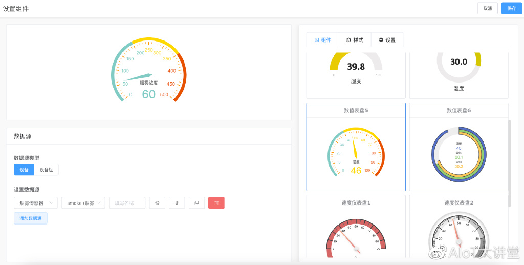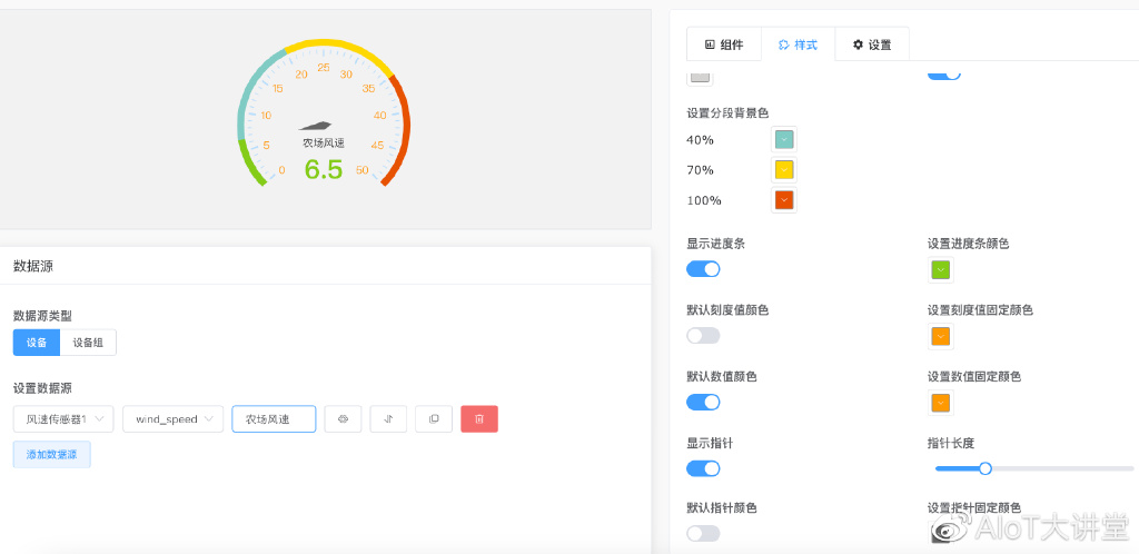 选定组件后,可以对仪表盘样式进行自定义调整。不同仪表盘支持不同的样式选项。