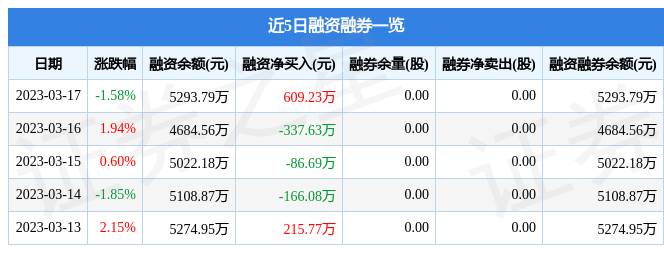 真兰仪表融资融券信息显示,融资方面,当日融资买入1103.47万元,融资偿还494.23万元,融资净买入609.23万元。融券方面,融券卖出0.0股,融券偿还0.0股,融券余量0.0股,融券余额0.0万元。融资融券余额5293.79万元。近5日融资融券数据一览见下表: