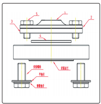 新型装置隔膜腔体部件图中明确出隔膜的安装方式如图3所示:1-隔膜腔体冲油焊接面与3-测量腔体是个整体通,过2-压环用5-螺栓固定在安装法兰上,中间用4-密封四氟垫或石墨垫密封,安装法兰通过螺栓固定在测量装置接口法兰上即可完成测量。在隔膜腔体与测量装置接口中增加了安装法兰的厚度,中间的通孔的体积将介质流动的通道增加,当介质通过接口流动到膜片中间的这段距离,有效的缓解了介质因流动造成了对测量膜片的冲击,使其测量不会因为冲击造成测量的偏差,也保证了测量膜片不会因长时间的冲击造成损坏从而达到延长使用期的效果,从而降低了使用成本。