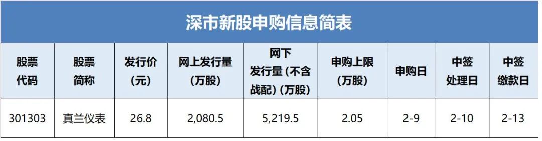 2023年2月9日,上海真兰仪表科技股份有限公司(简称:真兰仪表)将通过深交所网下发行电子平台和交易系统发行新股,具体信息如下。