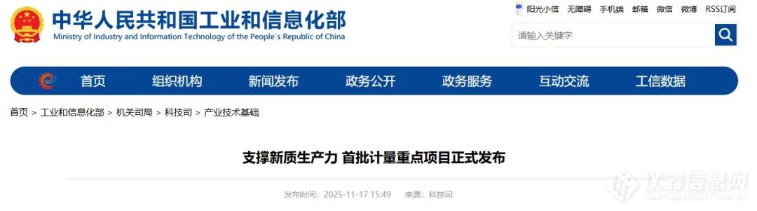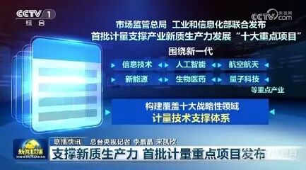 2025年11月12日,工信部与市场监管总局联合发布首批计量支撑产业新质生产力发展“十大重点项目”。围绕新一代信息技术、人工智能、航空航天、新能源、生物医药、量子科技等重点产业,构建覆盖十大战略性领域的计量技术支撑体系。